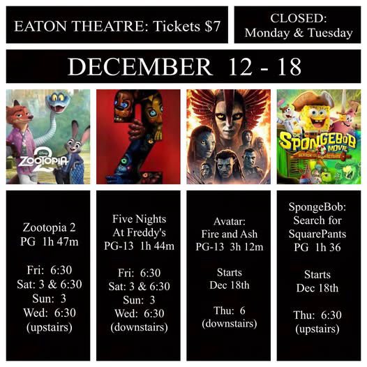 Seeing a movie at the Eaton Theatre (Build in 1931) is about more than affordable prices and great popcorn. Our team is dedicated to bringing you unique experiences that start as you approach the glow of our historical marquee and stay with you long after the credits roll. We not only offer first run movies at a great price, but we also offer community events. Help us to not only continue refurbishing this historical theatre, but also to continue to offer a place for families to gather and enjoy time together. Your donation will also help offset the costs for free movies shown throughout the year for the community, We have added a new retro arcade, currently working on a second arcade room, and are working hard to continue our repairs and upgrades. With your support we'll keep those magical experiences alive. It's easy, it's fast, and it's safe to donate to your local downtown movie theatre online. Just click the button below and help keep our historical theatre improving...Thank you!