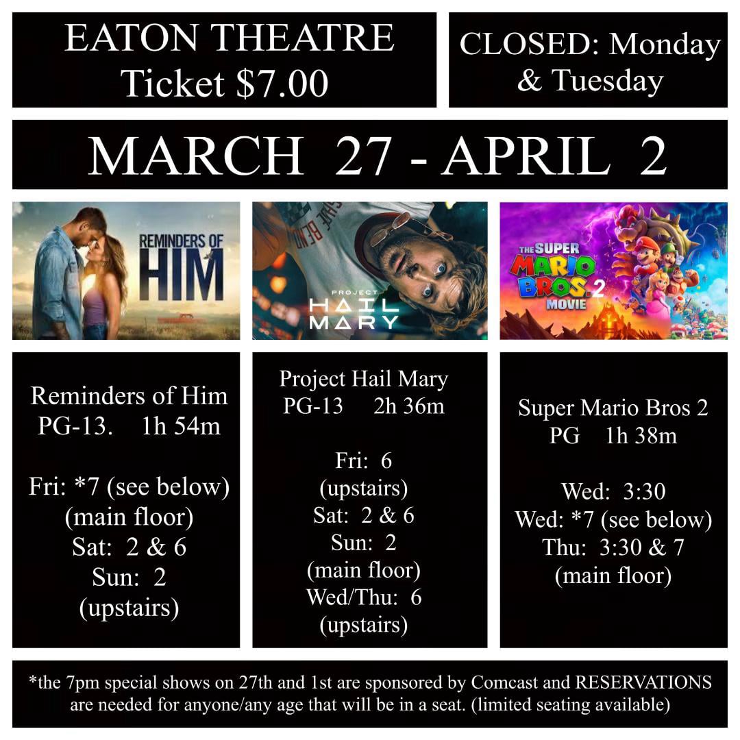 Seeing a movie at the Eaton Theatre (Build in 1931) is about more than affordable prices and great popcorn. Our team is dedicated to bringing you unique experiences that start as you approach the glow of our historical marquee and stay with you long after the credits roll. We not only offer first run movies at a great price, but we also offer community events. Help us to not only continue refurbishing this historical theatre, but also to continue to offer a place for families to gather and enjoy time together. Your donation will also help offset the costs for free movies shown throughout the year for the community, We have added a new retro arcade, currently working on a second arcade room, and are working hard to continue our repairs and upgrades. With your support we'll keep those magical experiences alive. It's easy, it's fast, and it's safe to donate to your local downtown movie theatre online. Just click the button below and help keep our historical theatre improving...Thank you!